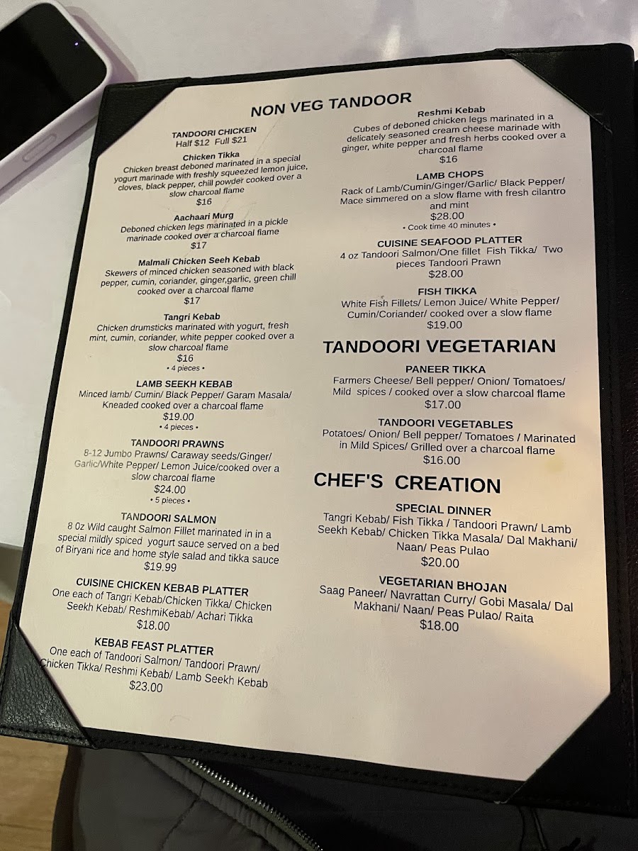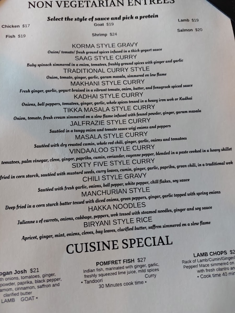 The menu is a vibrant tapestry of traditional Indian dishes, bringing together rich spices and fresh ingredients. Highlights include the aromatic Biryani, a fragrant rice dish paired with marinated meats, and the classic Butter Chicken, known for its creamy tomato sauce that warms the soul. For those seeking vegetarian delights, the Palak Paneer offers a satisfying blend of spinach and cheese that celebrates plant-based cooking.